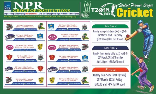 The NPR Group of Institutions organizes a Student Premier League – 2024 from 04/03/2024 to 14/03/2024