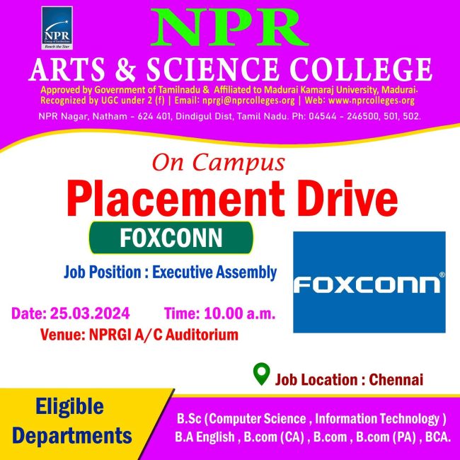 The Training and Placement Cell organizes On Campus Placement Drive – Foxconn