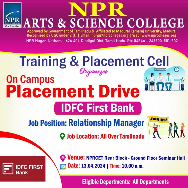 The Training and Placement Cell organizes On Campus Placement Drive – IDFC First Bank