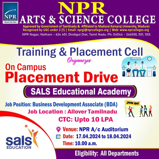 The Training and Placement Cell organizes On Campus Placement Drive – Sals Educational Academy