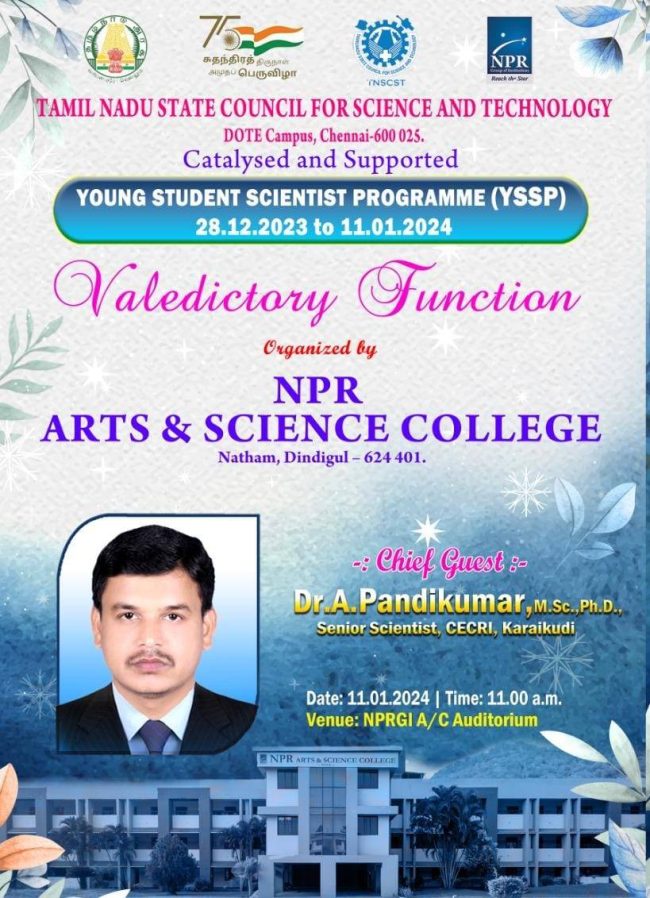 The NPR Arts & Science College organizes a Valedictory Function of the Young Student Scientist Programme (YSSP) – 2023