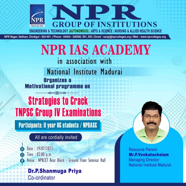 The NPR IAS Academy organizes a Motivational Programme on Strategies to Crack TNPSC Group IV Examinations