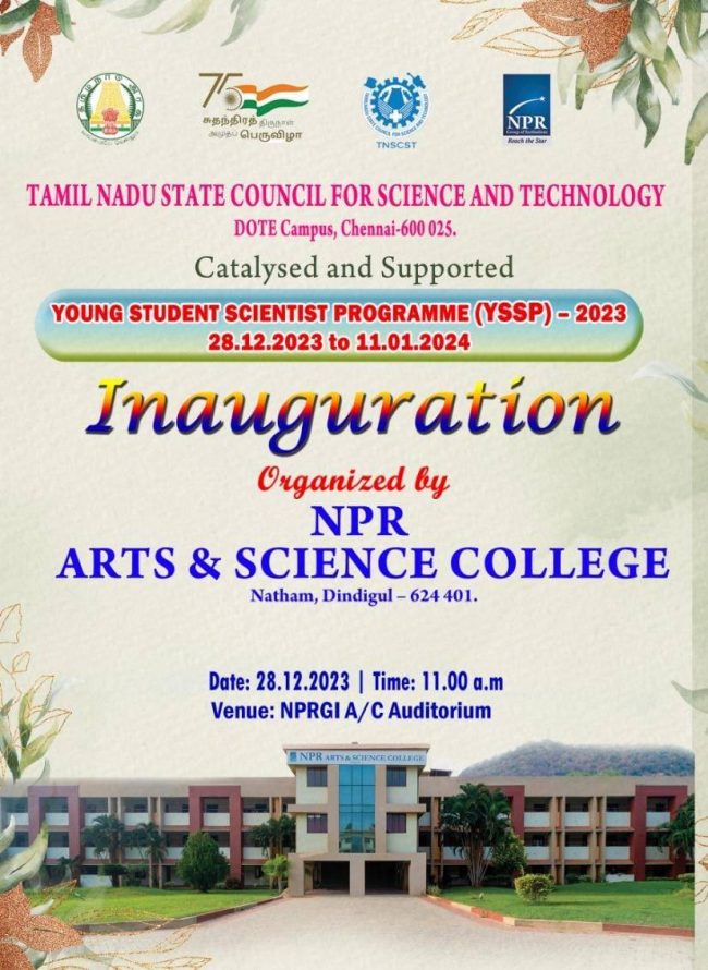The NPR Arts & Science College organizes a Inauguration of Young Student Scientist Programme (YSSP) – 2023