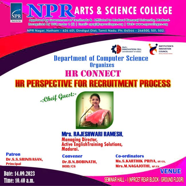 The Department of Computer Science organizes an HR Connect on HR Perspective for the Recruitment Process