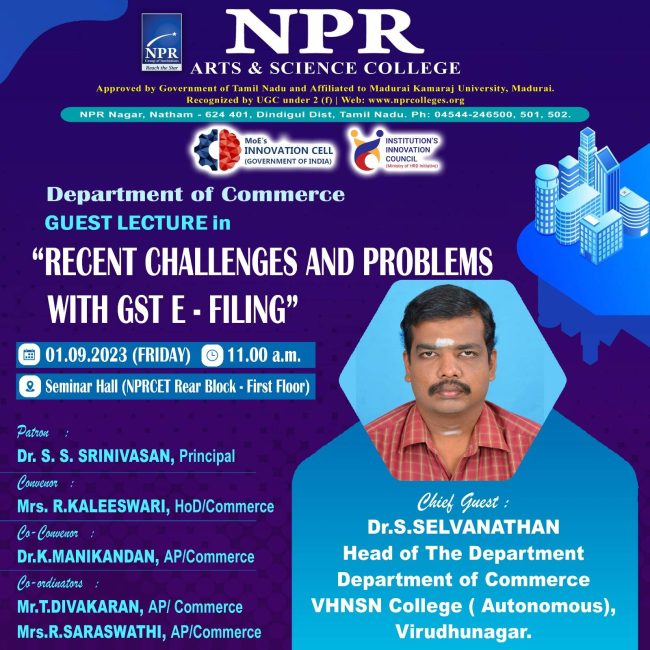The Department of Commerce organizes a Guest Lecture on Recent Challenges & Problems with GST E-Filing