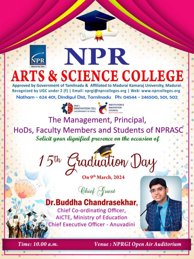 The NPR Arts & Science College organizes a 15th Graduation Day