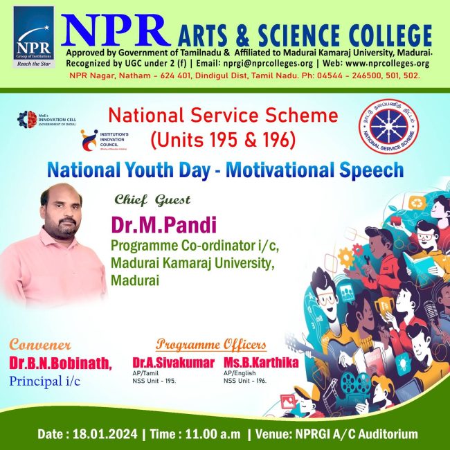 The NSS Units of NPR Arts & Science College organizes a National Youth Day Motivational Speech