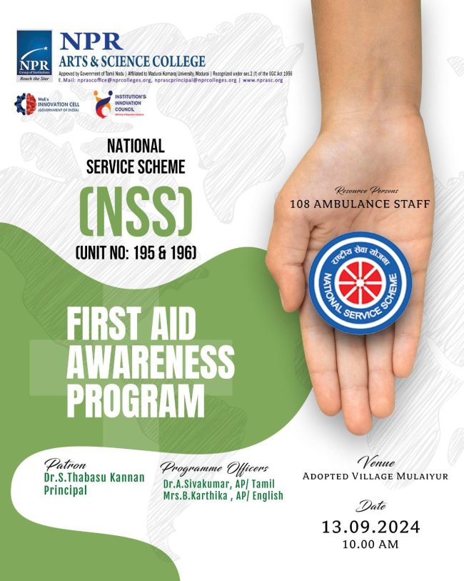 The National Service Scheme Units (195 &196) organizes First Aid Awareness Program Resource Persons: 108 Ambulance Staffs