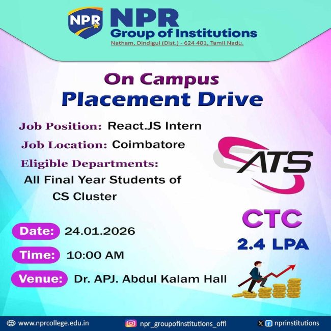 The Training & Placement Cell organizes the On-Campus Placement Drive – ATS for their students.