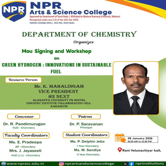 The Department of Chemistry organizes the MOU Signing and Workshop on Green Hydrogen: Innovations in Sustainable Fuel for their students.