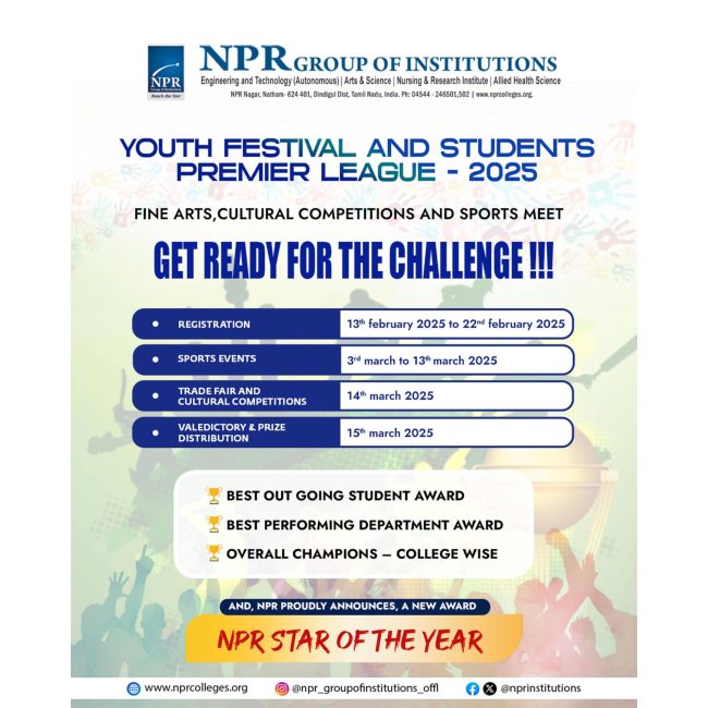 The NPR Group of Institutions organizes the NPR Youth Festival – 2K25, an intracollegiate competetions