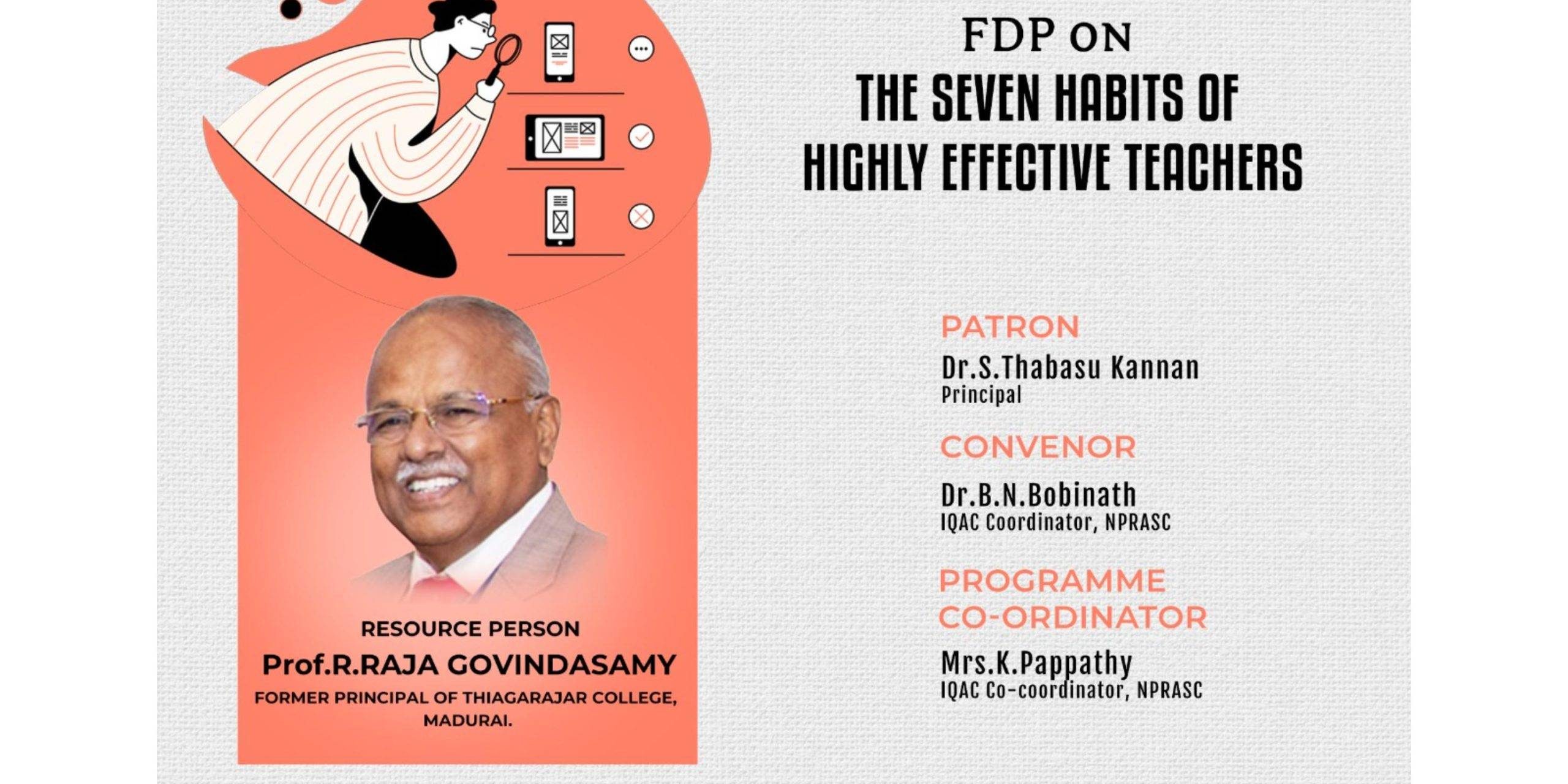 The Internal Quality Assurance Cell (IQAC) organizes a Faculty Development Program on The Seven Habits of Highly Effective Teachers for their staffs