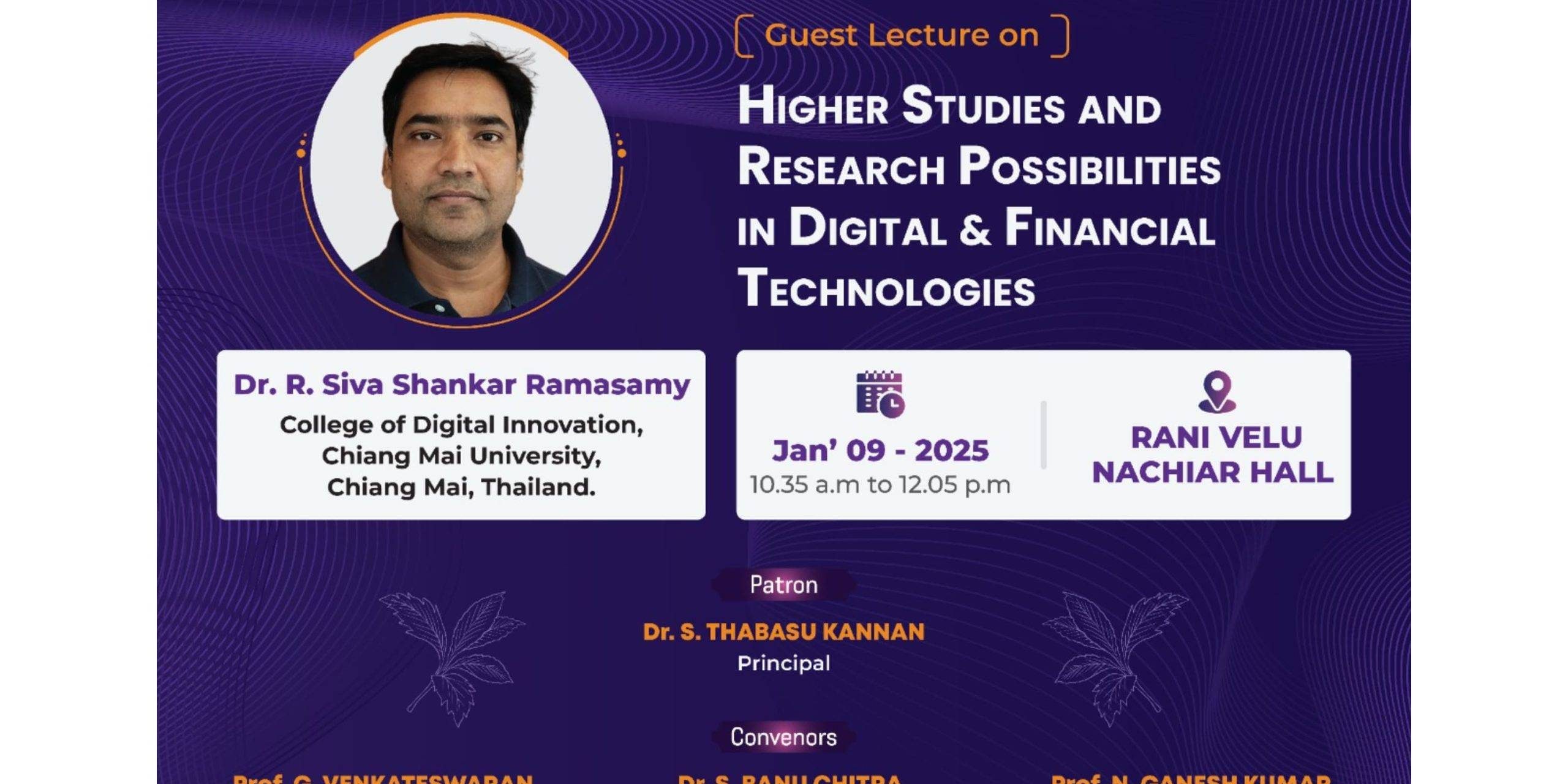 The Departments of Computer Science, Information Technology and Computer Applications organizes a Guest Lecture on Higher Studies and Research Possibilities in Digital & Financial Technologies for their students