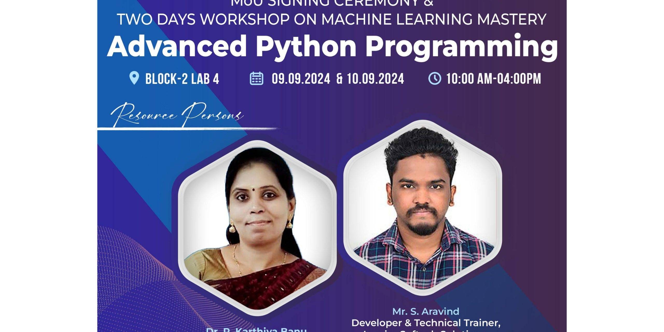 The Department of Computer Applications organizes MoU Signing Ceremony & Two Days Workshop on Machine Learning Mastery and Advanced Python Programming for their students