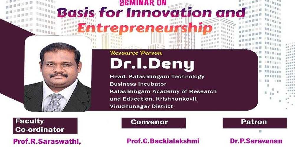 The Intellectual Property Rights Cell (IPR) Organizes the Seminar On Basis for Innovation and Entrepreneurship for their students.