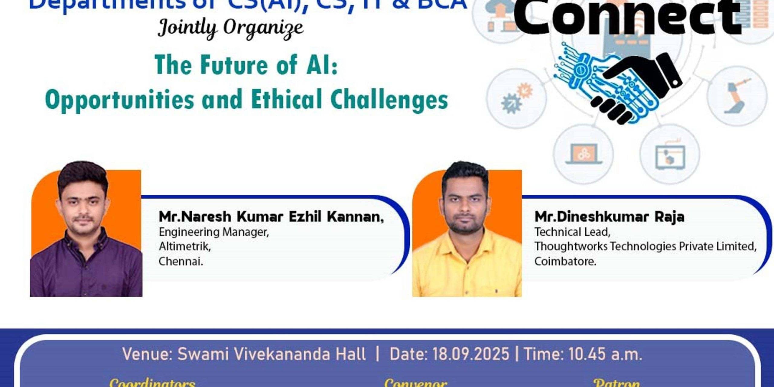 The Departments of CS(AI), CS, IT & BCA Jointly Organizes The Future of Al: Opportunities and Ethical Challenges for their students.