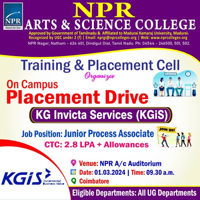 The Training and Placement Cell organizes On Campus Placement Drive – KG Invicta Services (KGiS)