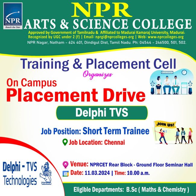 The Training and Placement Cell organizes On Campus Placement Drive – Delphi TVS