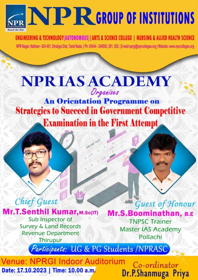 The NPR IAS Academy organizes an orienation programme on Strategies to Succeed in Government Competitive Examinations in the First Attempt