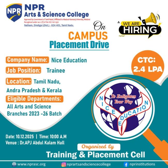 The Training and Placement Cell organises an On-Campus Placement Drive by Nice Education for their students.