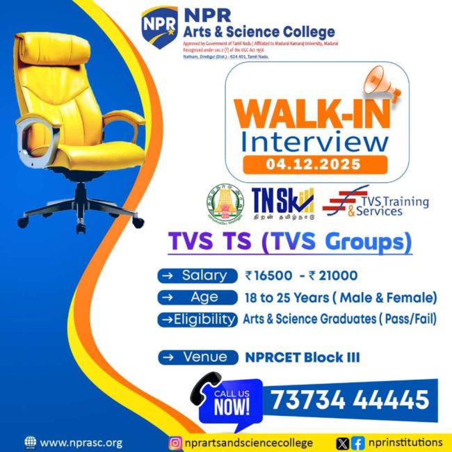 The Training and Placement Cell organises a Walk-In Interview by TVS Groups for their students.
