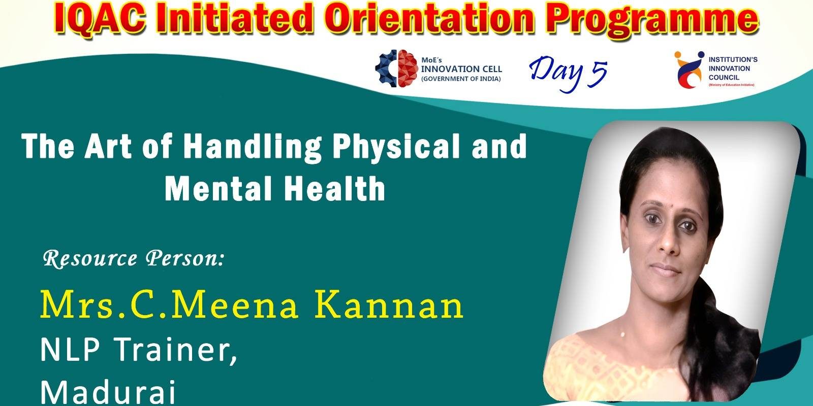 The NPR Arts and Science College organizes a Day – 5 Orientation Program for freshers batch 2024-27 a Guest Lecture on The art of Handling Physical and Mental Health for their students.
