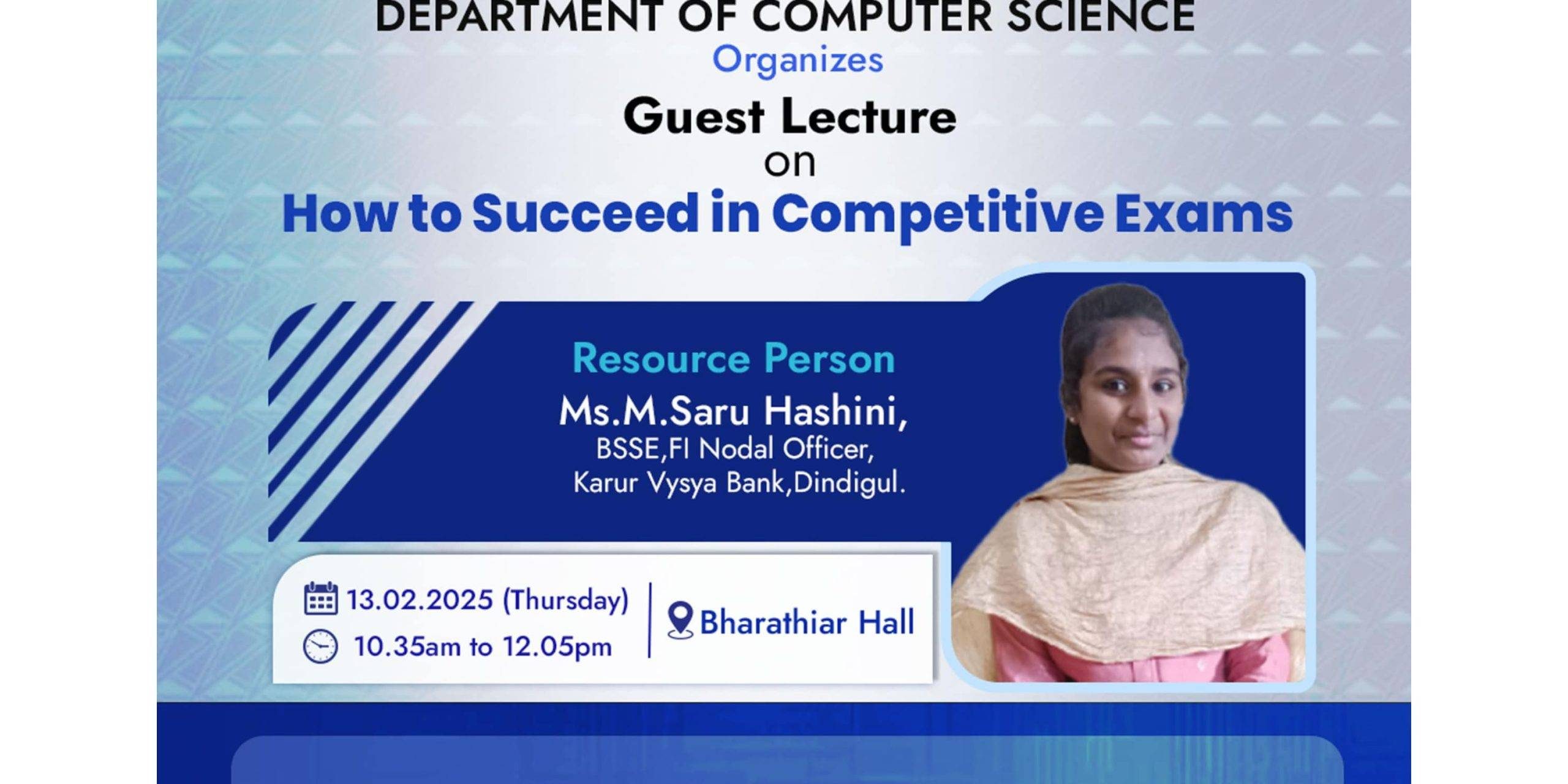 The Department of Computer Science organizes a Guest Lecture on How to Succeed in Competitive Exams for their students