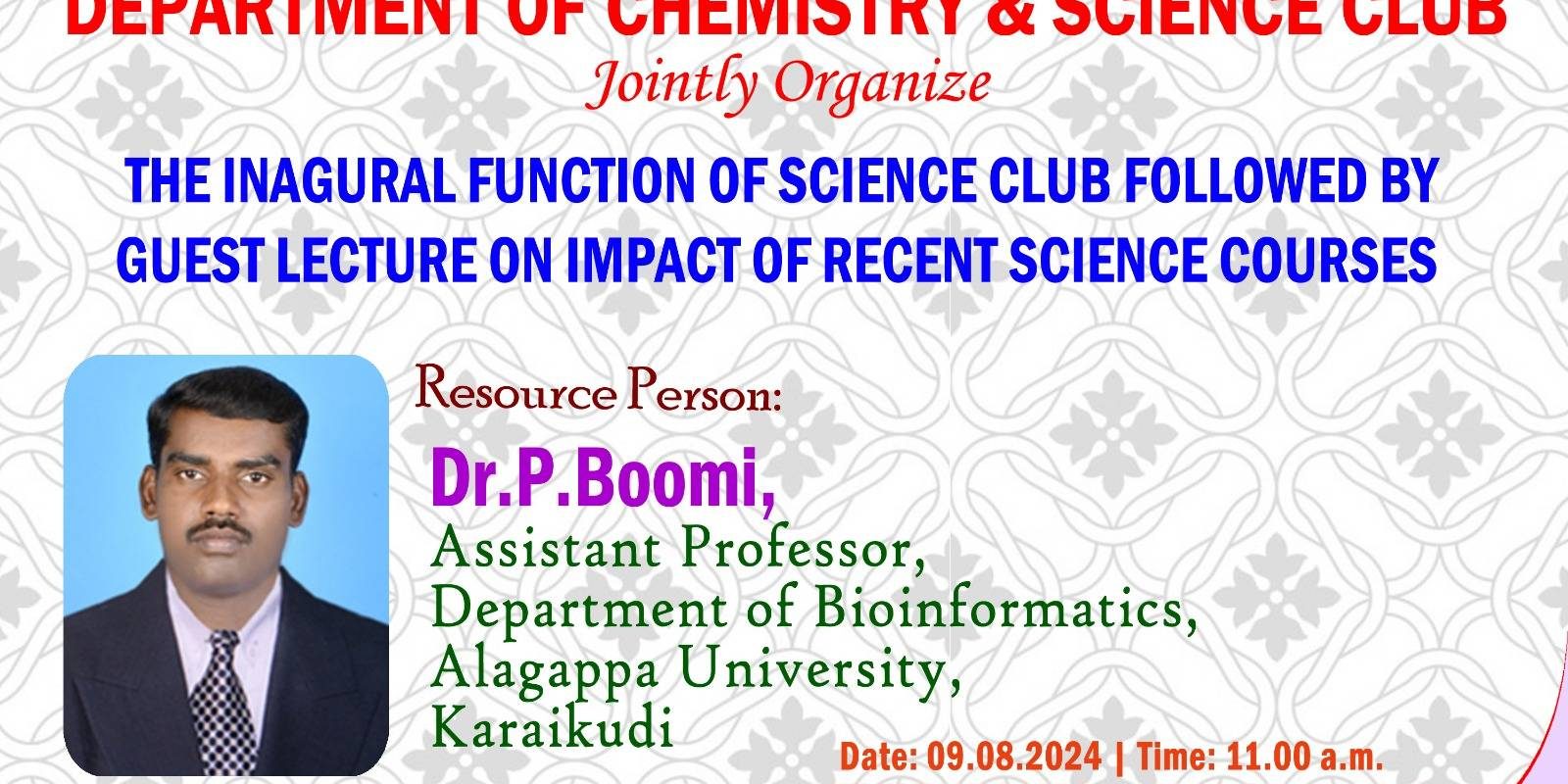The Department of Chemistry organizes the Inaugural Function of the Science Club & Guest Lecture on the Impact of Recent Science Courses