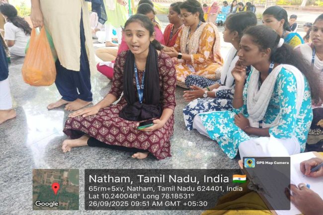 NPR Arts & Science College, in collaboration with National Service Scheme (Units 195 & 196) and Natham Municipality, organized a “Swachhata Hi Seva” Cleaning Drive on 25.09.2025. Sixty NSS volunteers participated in the drive and successfully collected over 30 kilograms of plastic waste.