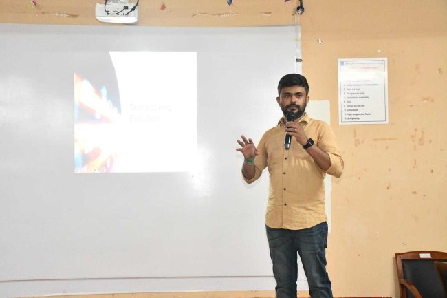 The Department of Computer Science & Artificial Intelligence Jointly Organized a One Day Workshop on Python for their students. Resource Person Mr. B. Kaleeswaran Senior Full Stack Developer Marqwon Private Limited, Madurai.