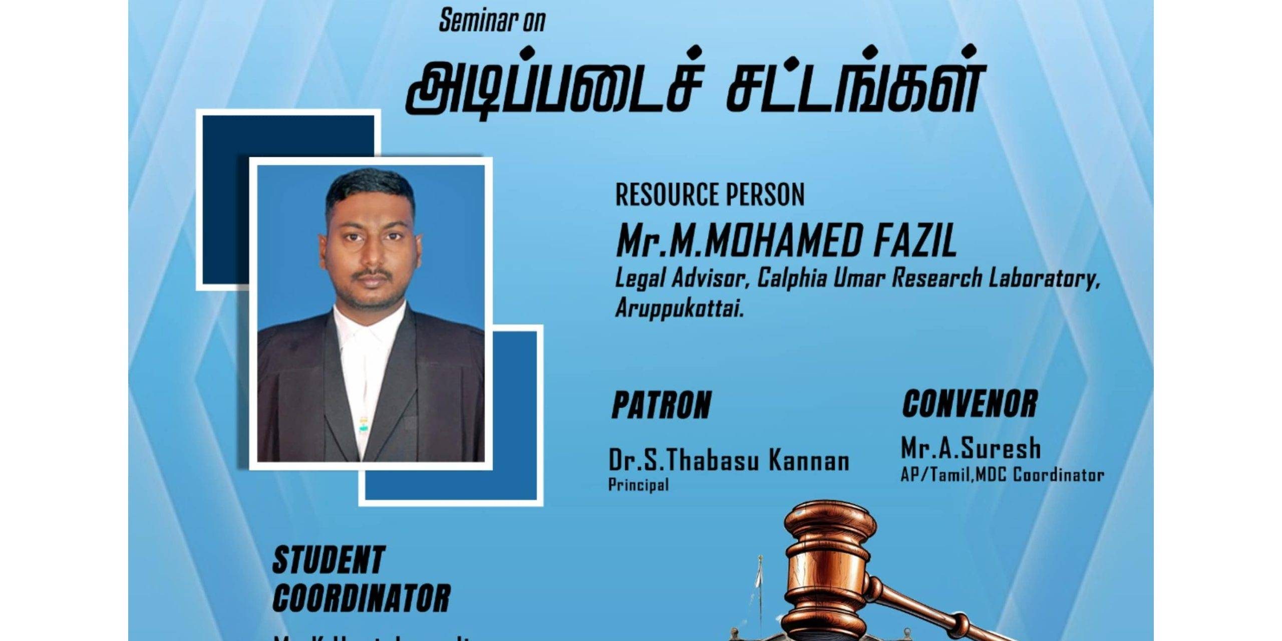 The Men Development Cell (MDC) organizes a Seminar on அடிப்படைச் சட்டங்கள் for their students